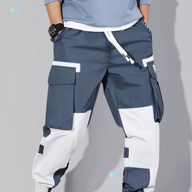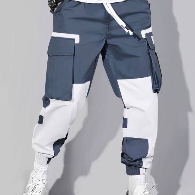 Pantalon cargo bleu et blanc streetwear