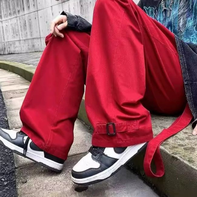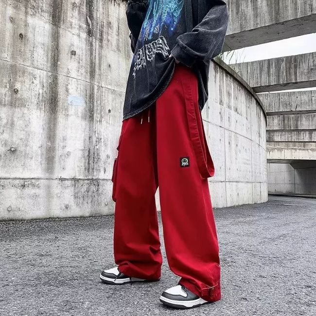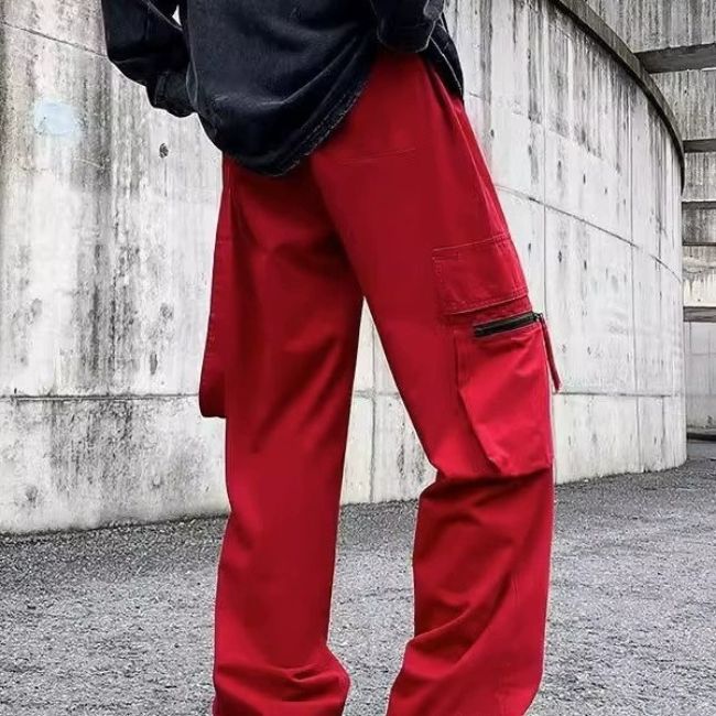 Pantalon cargo streetwear rouge hype
